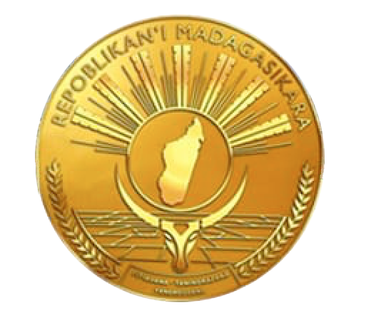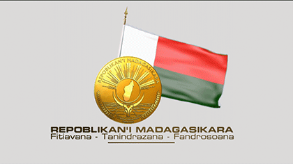 Официальная эмблема страны (герб) была изменена в 2010 году в соответствии с новой конституцией, принятой в ноябре 2010 года. Она представляет собой золотой диск с изображением острова Мадагаскар в венце из листьев равенала между рогов головы быка, обрамленной ветками спелого риса с обеих сторон. Сверху текст «Республика Мадагаскар», а ниже - девиз: «Любовь - Родина-Развитие».